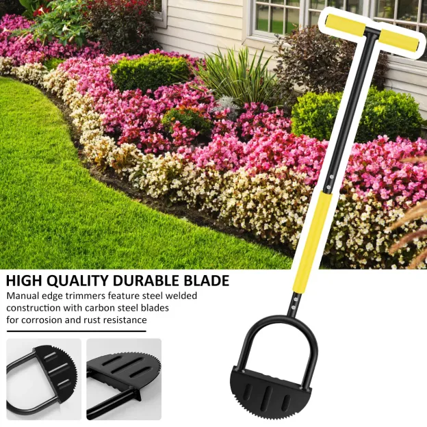 ✅High-Quality Durable Blade: The manual edger has steel welded construction with a carbon steel blade, which has anti-corrosion and anti-rust properties. The height of this manual lawn edger is about 39 inches, which is in line with the habits of most people.