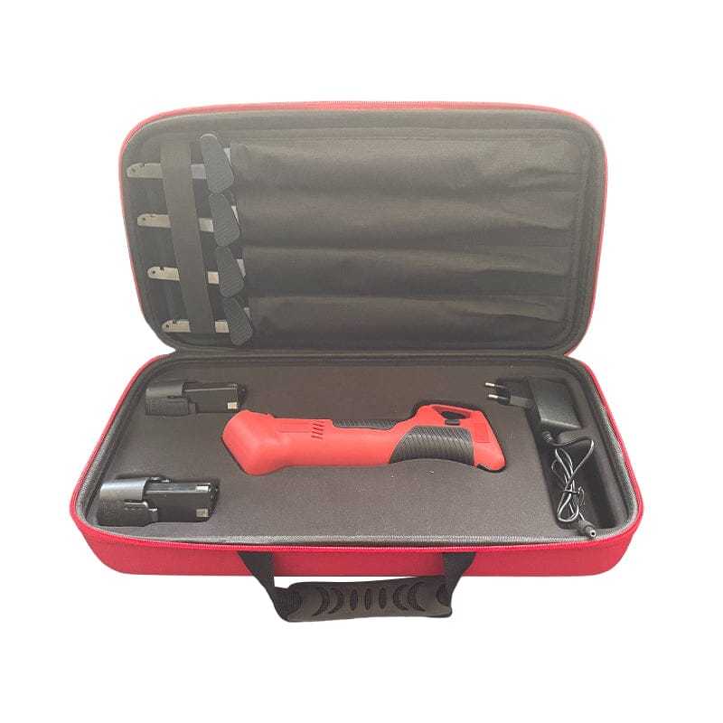 Comprehensive Set: The set includes 7” E-FLEX, 9” E-FLEX, 9” E-STIFF and 12” E-STIFF blades, a charger, a handle, 2 lithium-ion batteries, and a case for storage.