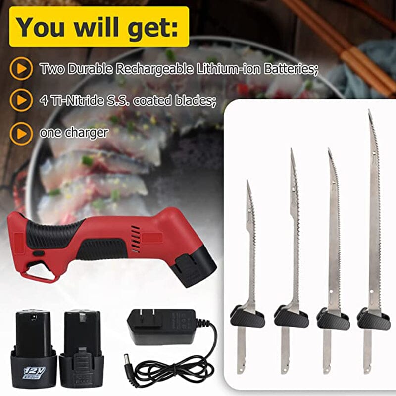 Powerful performance: The brushless motor provides increased power and torque, allowing for efficient and effective cutting of fish, it also can cut bread and vegetables.