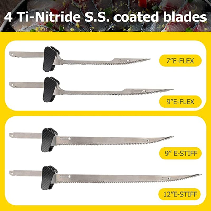 Versatility: The kit includes 7" E-FLEX, 9" E-FLEX, 9" E-STIFF, and 12" E-STIFF blades, making it perfect for filleting different sizes and types of fish.