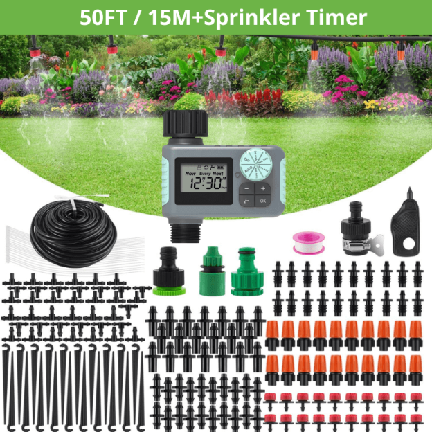 Easy Installation:Simple installation without digging or plumbing skills,simply insert the fittings and sprayers, you can begin watering your plants instantly.