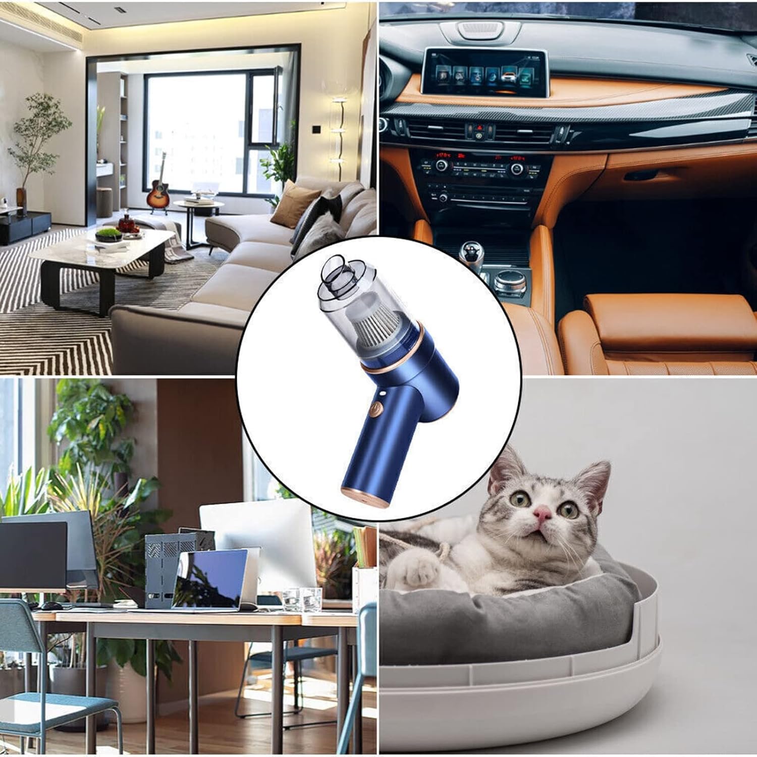 【Multi-nozzle and fine cleaning】: The crevice tool allows access to hard-to-reach areas, such as between sofa cushions, as well as for vacuuming in narrow, irregular crevices such as furniture, car upholstery, and small edges. The portable car vacuum cleaner also comes with a variety of removable brush head nozzle accessories, perfect for helping you deep clean cars, keyboards, cameras, electronics, air conditioners, sofas, windows, pets, plants and more, or for aerating.