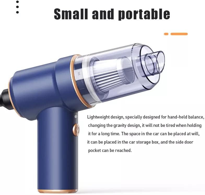 【COMPACT AND PORTABLE】: This car handheld vacuum cleaner weighs only 450g, lightweight, easy to carry and store. It's a great gift for family, friends, workers, and coworkers. The small size makes it easy to hold for long periods of time without getting tired. Our cordless handheld vacuum cleaner has no wall mounted vacuum, no bulky or tangled cables to make cleaning easier and more efficient.