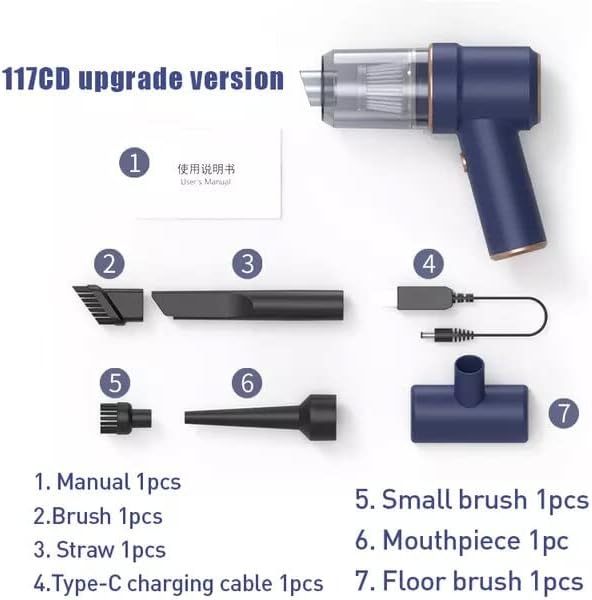 【POWERFUL SUCTION】: Portable car vacuum cleaner features an advanced motor with a maximum speed of 6000 RPM.Built-in 4000mAh battery comes with a protective plate to ensure safe charging and use. Comes with a C-cord for charging.