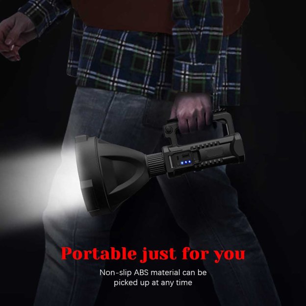 The rechargeable spotlight flashlights can be recharged repeatedly. It has a built-in 6000mAh large-capacity lithium battery and is equipped with a USB output port. It is like a power bank, which can quickly and conveniently charge your device. It is also a good companion for you to go out.It also has a battery indicator.