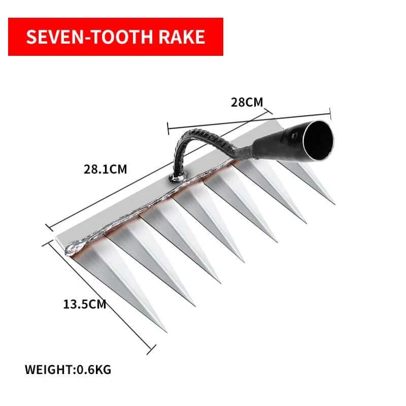Versatile Use: Equipped with 4/5/6/7 sharp teeth, this rake is suitable for multiple gardening tasks. From weeding to soil aeration, leveling the ground, and creating furrows, it excels in various aspects of gardening. Whether you're a professional gardener or a hobbyist, this garden rake will become your most reliable partner.