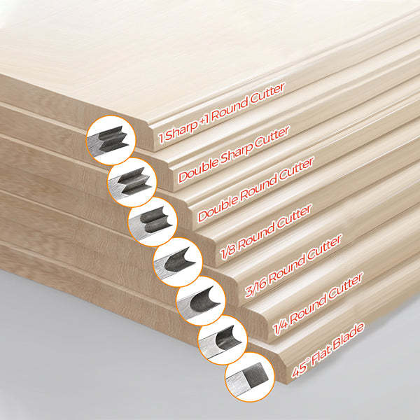 🧰7 Kinds Of Cutter Heads - Easily add other drill bits (1 round cutter, double sharp cutter, double round cutter, 1/8 round cutter, 3/16 round cutter, 1/4 round Blade, 45°flat-angle blade). Adapt to various sizes of work, improve work efficiency.